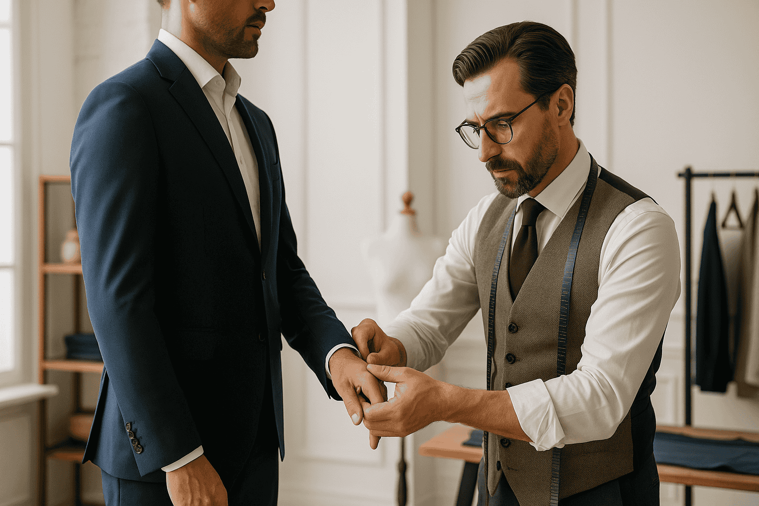 Jacket sleeves that are altered too short or left too long ruin a suit’s proportions. According to GQ, the golden rule is that a quarter to half an inch of shirt cuff should be visible when standing naturally. Many tailors overlook this detail or simply guess, resulting in sleeves that throw off the entire look.