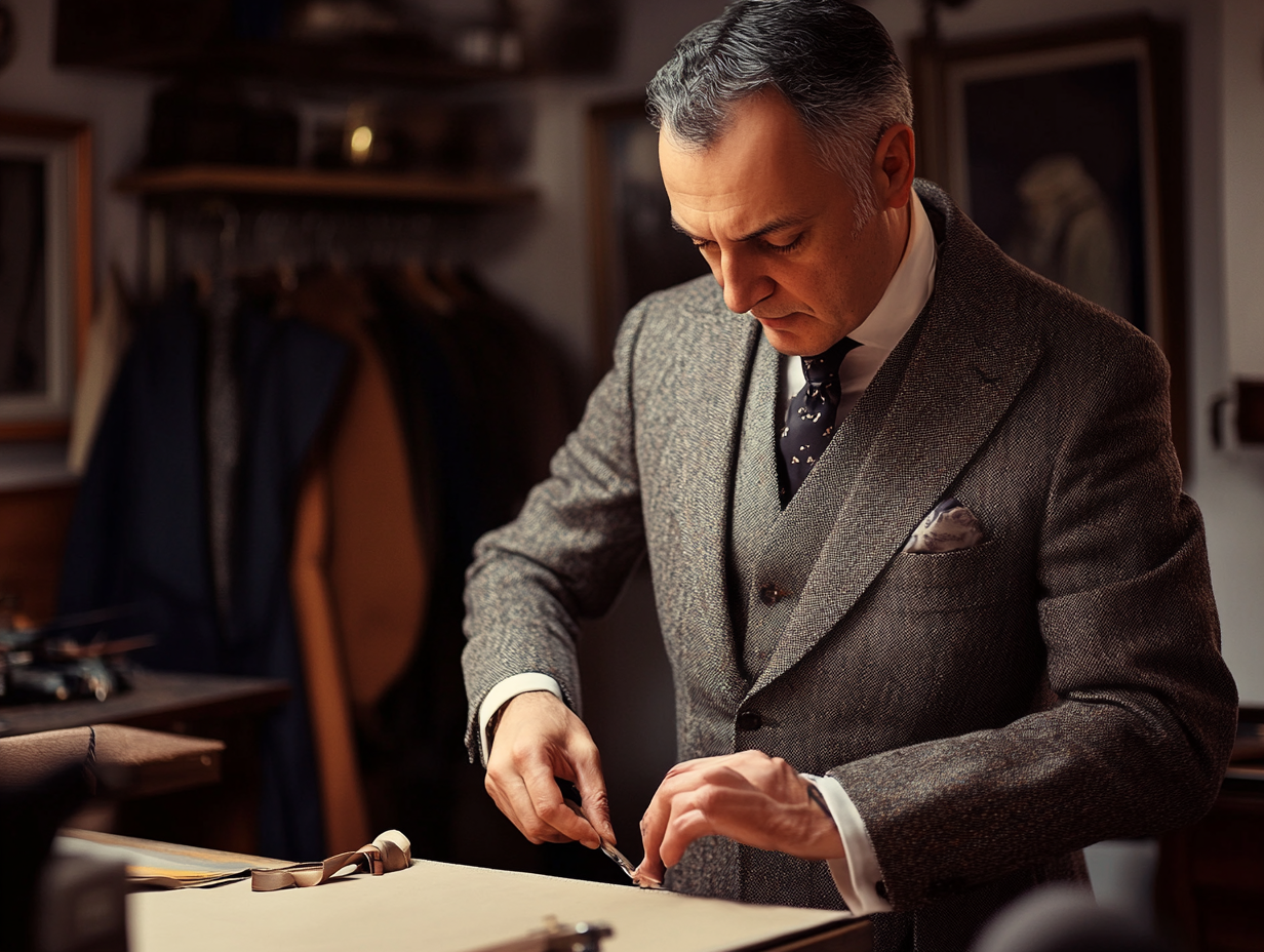 Text below the step’s image reads “One of our tailors takes your measurements to make sure the garment will fit you perfectly.”